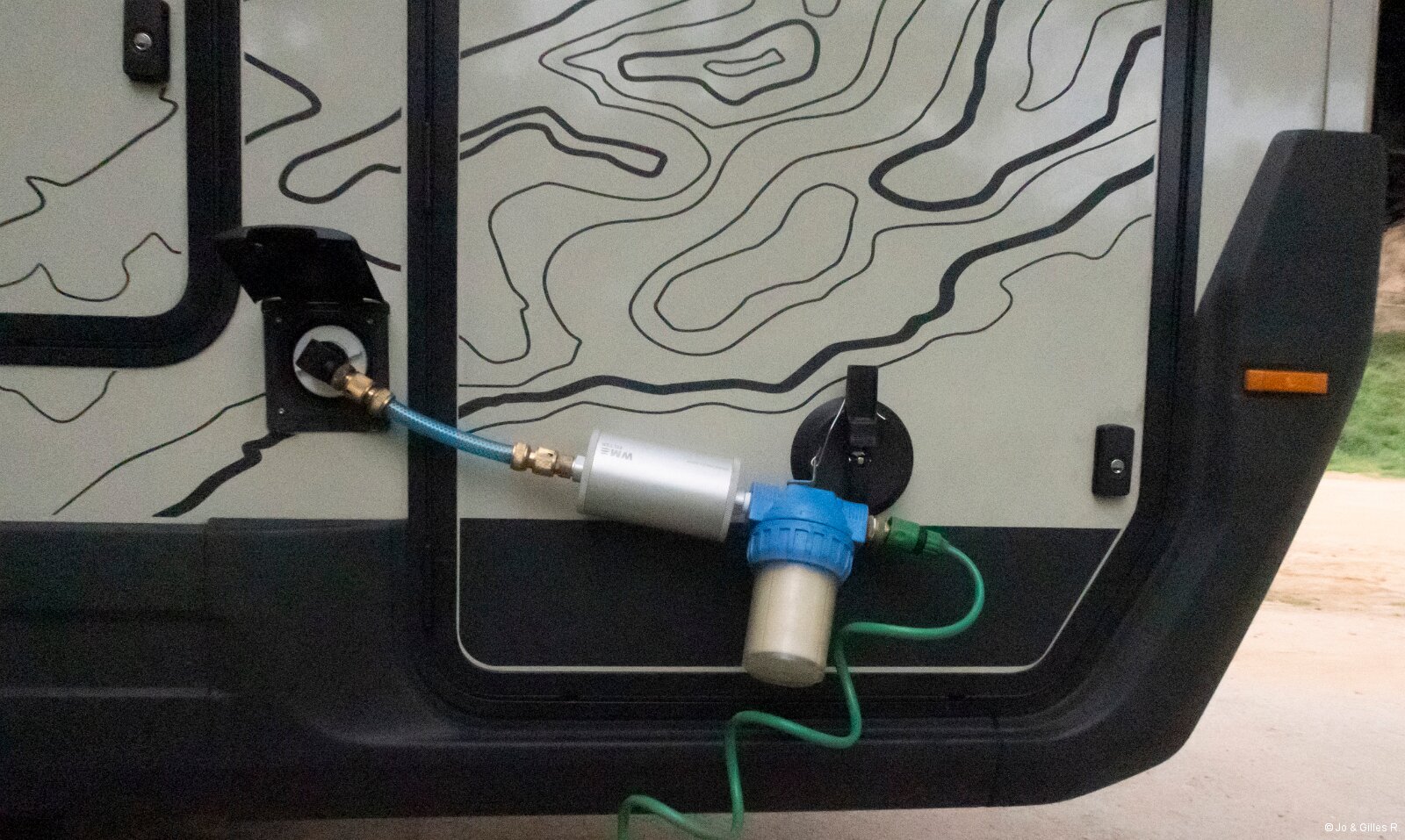 Filtre à sédiments + filtre charbon au moment du remplissage du réservoir.