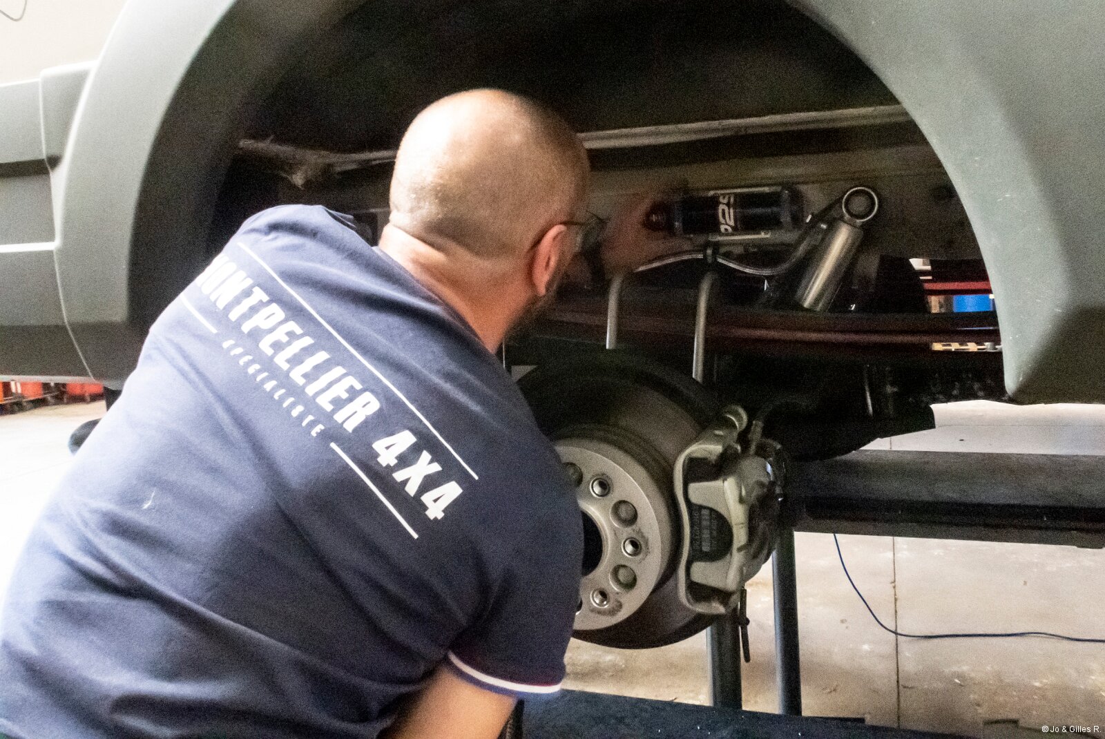 Pose de quatre amortisseurs P2S réglables en remplacement de ceux d'origine Mercedes.